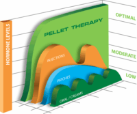 Aun cuando la dosis suministrada puede ser muy baja para un hombre (rango mensual en castración 50 a 750 mg semanal a trimestral dependiendo de la preparación) los pellets pueden ser un terapia apropiada para un hombre de bajo peso o con comorbilidades o sencillamente como prueba terapéutica con bajas dosis para evaluar el efecto sostenido por 3-4 meses antes de considerar otras vías como la inyectable, más económica, con mayor dosificación y autoadministrada para el largo plazo. Mi dosis personal es 500 mg inyectables cada 6 semanas despúes de haber usado 400 mg en pellets hace 5 años.