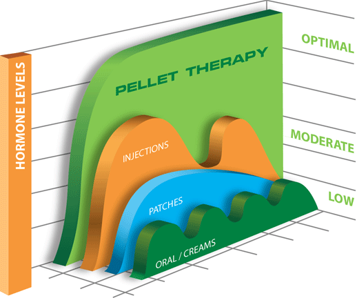 Los pellets de testosterona son implantes subcutáneos de testosterona cristalina bioidéntica fusionada con un vehículo (ácido graso, ácido esteárico), utilizados para la terapia de reemplazo hormonal optimizada tanto en mujeres como en hombres. El estearato actúa como lubricante o agente compresor para facilitar la estabilidad del pellet, sin alterar la molècula activa.